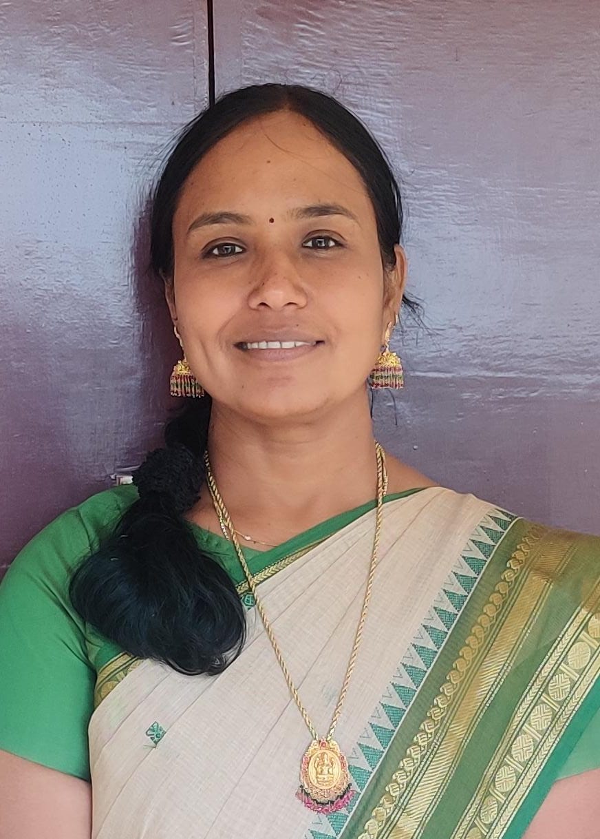 Qualification : M. A., (Women Studies) M. Sc., (Chemistry) & M. Phil (Women Studies)